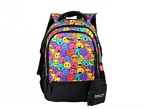 Ghiozdanul de la DACO este alegerea perfectă pentru elevii care vor un ghiozdan vesel și funcțional, cu un design multicolor plin de energie, ideal pentru școlarii activi. Construit din poliester de calitate, acest ghiozdan este durabil și ușor de curățat, asigurând o utilizare îndelungată.