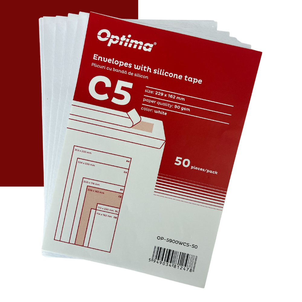 Plic C5 (229x162mm), lipire siliconica, 50 buc/set, Optima - alb Plic alb A5 cu deschiderea pe latura mica Dimensiuni: 162 x 229 mm Culoare: maro Ambalare: 50 buc./segt Mod lipire: siliconic (se sigileaza prin indepartarea benzii care acopera suprafata siliconica si suprapunerea clapelor) 15,00 lei / buc.SET-+0,00 leiadaugă în coșînapoi la categoria ACCESORII BIROU